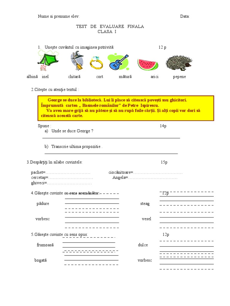 Teste de evaluare pentru clasa 1, clasa 2, clasa 3, clasa 4 la limba romana! Comunicare in limba romana clasa 2. Fiecare evaluare dureaza 60 de minute. Clasa i 404 produsul solicitat nu există. Caiet de matematica clasa 1 romănâ.